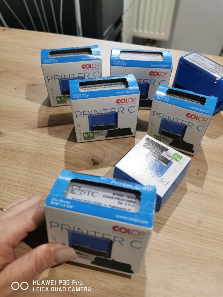 Pieczątki są gotowe do użycia i przystosowane do intensywnej eksploatacji.